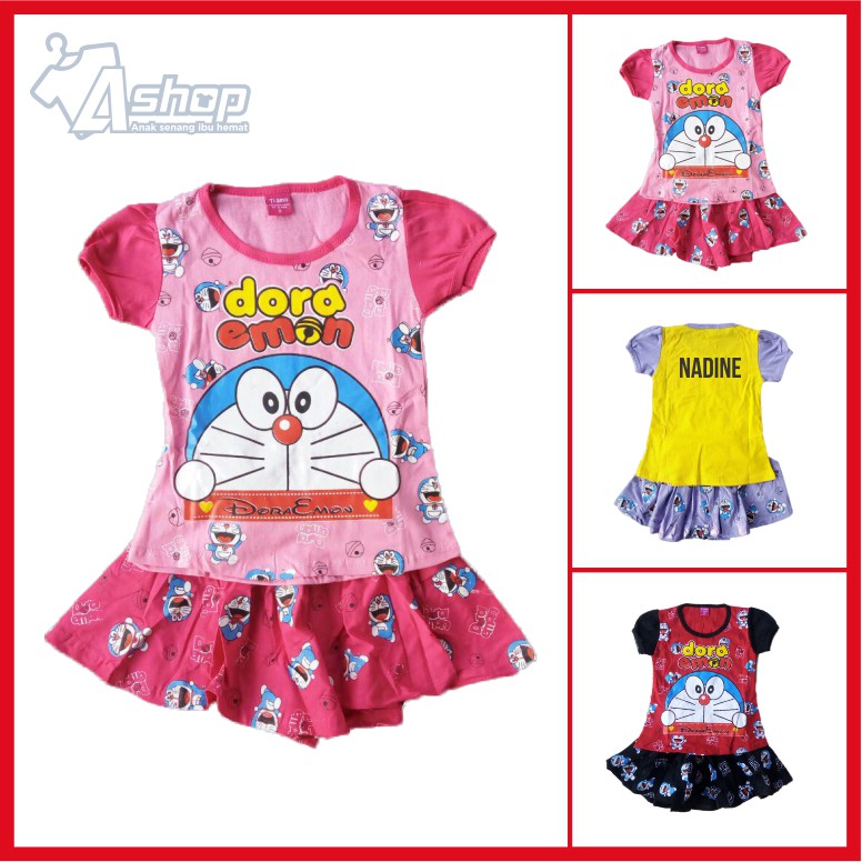 Baju Anak Perempuan Motif Doraemon 1 Setelan Dengan Rok Shopee Indonesia