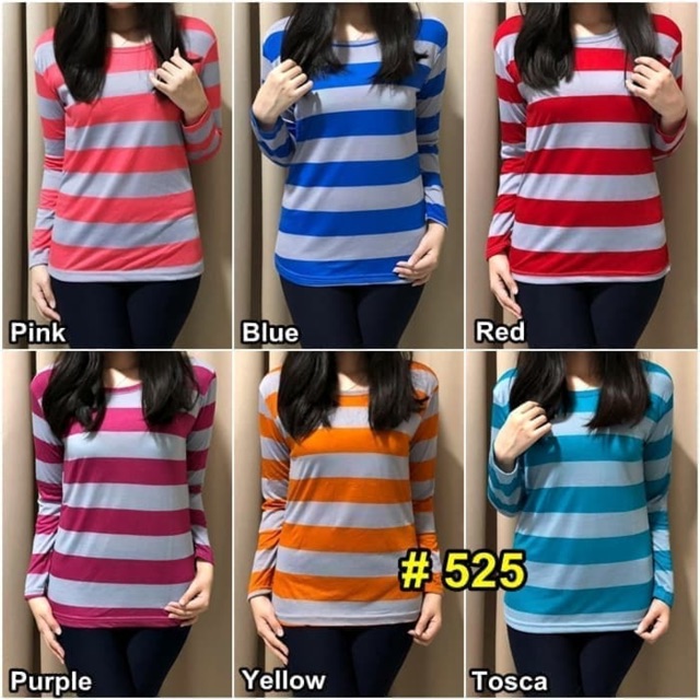 Stevia Top Warna Warni Kaos Salur Lengan Panjang Atasan Pakaian Wanita Shopee Indonesia