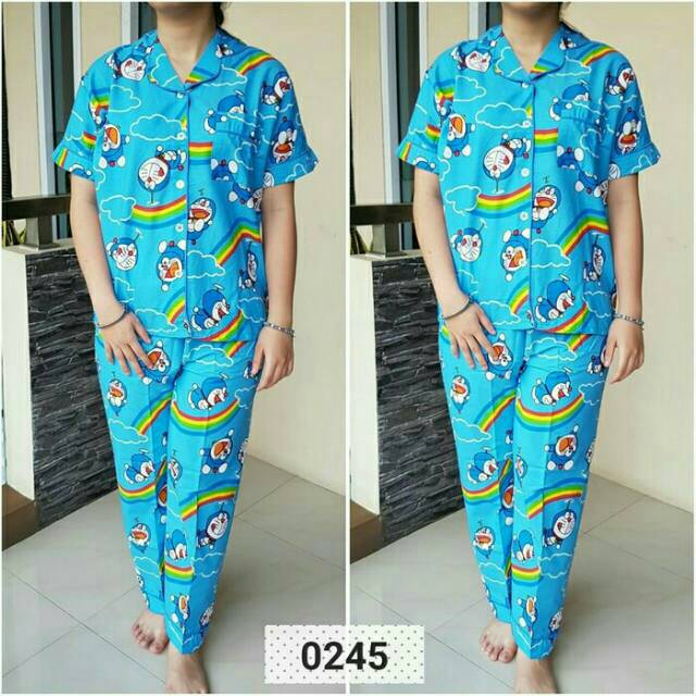 Piyama Cp Baju Tidur Bahan Katun Jepang Doraemon Piyama Doraemon Pelangi Shopee Indonesia